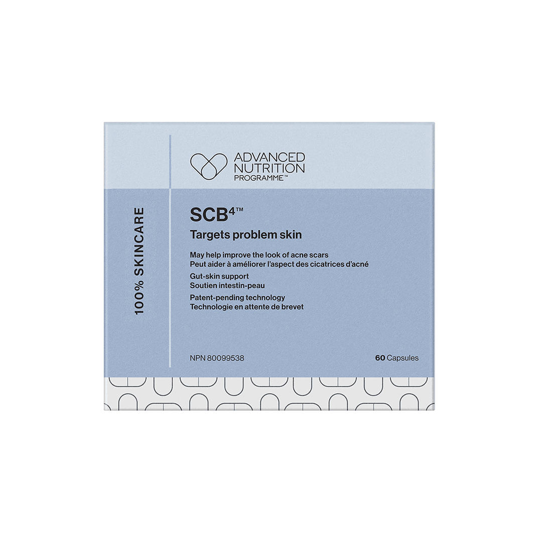- SCB4™ synergizes four specific strains of bacteria and yeast selected by our nutrition and scientific experts for their research-backed impacts on the underlying causes of problem skin. The skin-friendly strains are fused with zinc, which is recognized for its multiple benefits for the skin, to further skin balance and complexion clarity. This award-winning, patent-pending combination helps support our gut, maintain immunity*, soothe irritation, and balance oil.