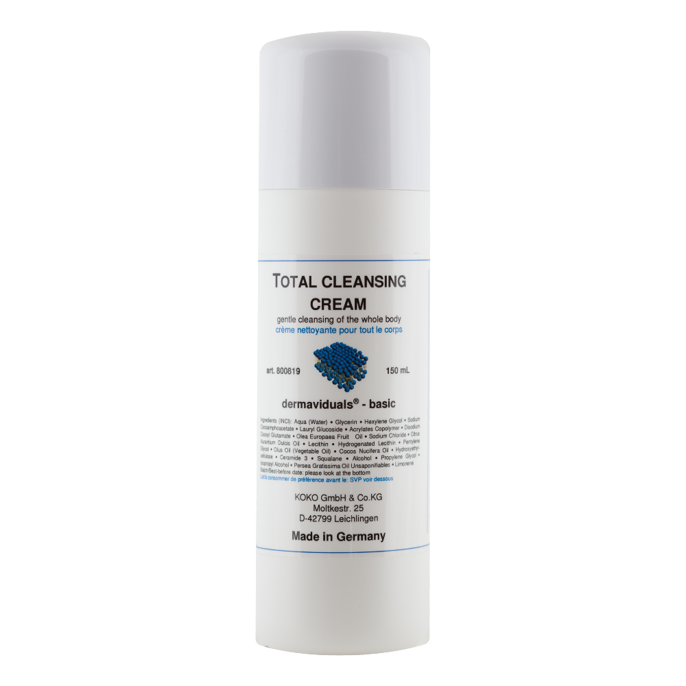 Total Cleansing Cream from Dermaviduals is a gentle cream cleanser that removes makeup, sunscreen, and daily buildup while supporting the skin barrier.