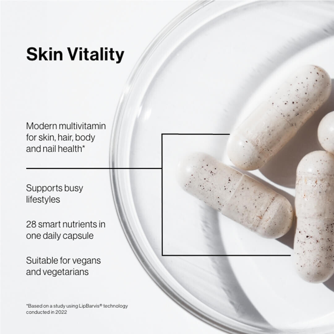 - Strategically formulated by our experts, SKIN VITALITY is a modern multivitamin that delivers a total of 28 smart nutrients in a convenient, one-a-day clean capsule for total skin, nail, hair, and body health.