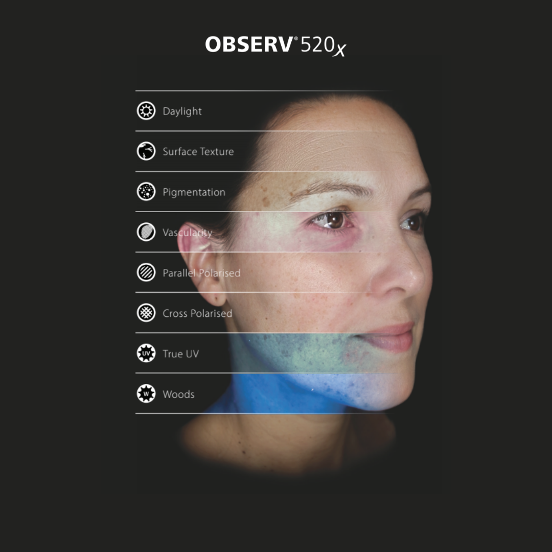 This comprehensive skin assessment includes the OBSERV 520x, advanced diagnostic imaging technology that allows us to see beneath the surface. It can reveal concerns such as dehydration, sun damage, barrier impairment, and pigmentation before they fully appear.